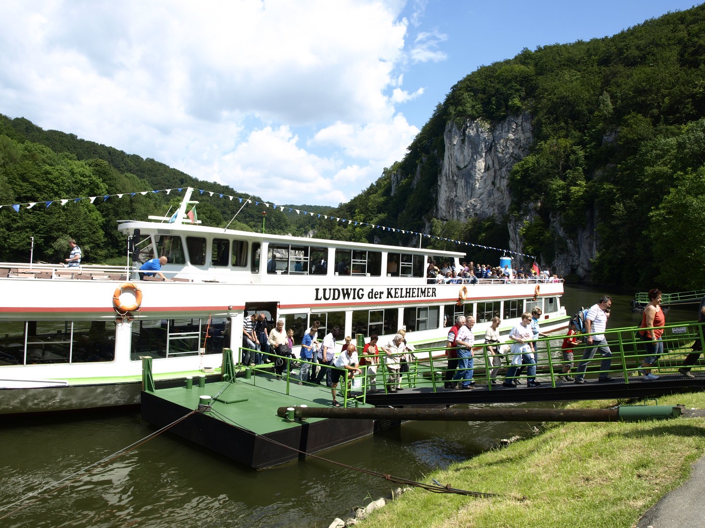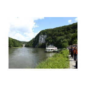 Befreiungshalle, Weltenburgin luostari ja laivamatka luostarilta Befreiungshallen luokse Donauta pitkin on ikimuistettava elämys. Donau on tässä kohtaa tosi kapea ja vuosimiljoonat ovat kaivaneet Jura-vuoristoon syvän uoman, jonka reunoilla vuoristokiipeilijät kokeilevat taitojaan. Weltenburgin luostari on kesäisin usein niin ihmismassojen piirittämä, että vapaasta pöydästä saa taistella. Jokimatka luostarin luota Befreiungshallelle pitäisi ehdottomasti kuulua ohjelmaan. "Die Befreiungshalle" on Baijerin kuninkaan Ludwig I:sen rakennuttama monumentaalinen muistomerkki Napoleonia vastaan käydyistä taisteluista vuosina 1813 - 1815. Muistomerkki on Kehlheimin kaupungin alueella ja siihen on mahdollista tutustua ainakin kesäkuukausina. Jokilaivoille on yleensä melkoinen tungos, mutta hyvällä onnella odotusaika voi jäädä lyhyeksikin. Odotus kannattaa, sillä Donau-joki on tässä ahtaassa uomassa korkeine seinustoineen ainutlaatuinen nähtävyys. Alueella on usein pahoja tulvia; veden korkeusmerkintöjä löytyy talojen seinistä. Kehlheimin lähellä on myös historiallisia, roomalaisten parituhatta vuotta sitten rakentamien talojen jäännöksiä. Niistä kertovat sivun viimeiset kuvat.