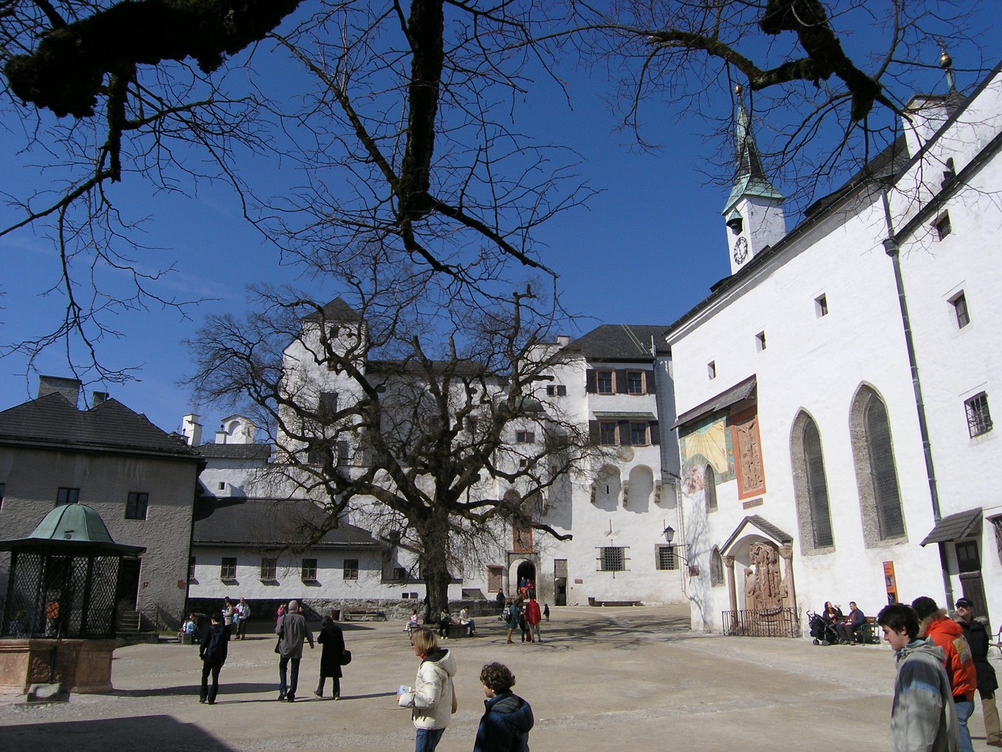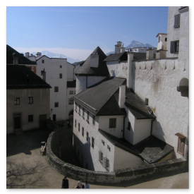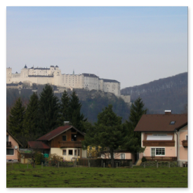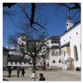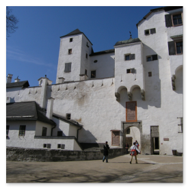 Salzburgista löytyy paljon nimekkäitä turistikohteita: kuuluisin on varmasti Festung Hohensalzburg, joka on eräs Euroopan suurimmista keskiaikaisista linnoista. Sen rakennustyöt aloitettiin vuonna 1077 suojaamaan alueen papistoa. Linnalle pääsee hissillä tai kävellen suhteellisen jyrkkää tietä pitkin. Linnan käytäviä ja museoita tutkiessa virähtää helposti vaikka koko päivä. Turisteja tuntui kiinnostavan varsinkin vanhat aseet, haarniskat, soittimet ja kaikenmaailman kidutusvälineet aina piinapenkeistä siveysvöihin. Linnan sisäpihan puiden varjossa on mukava istuskella, kun jalat alkavat protestoida.