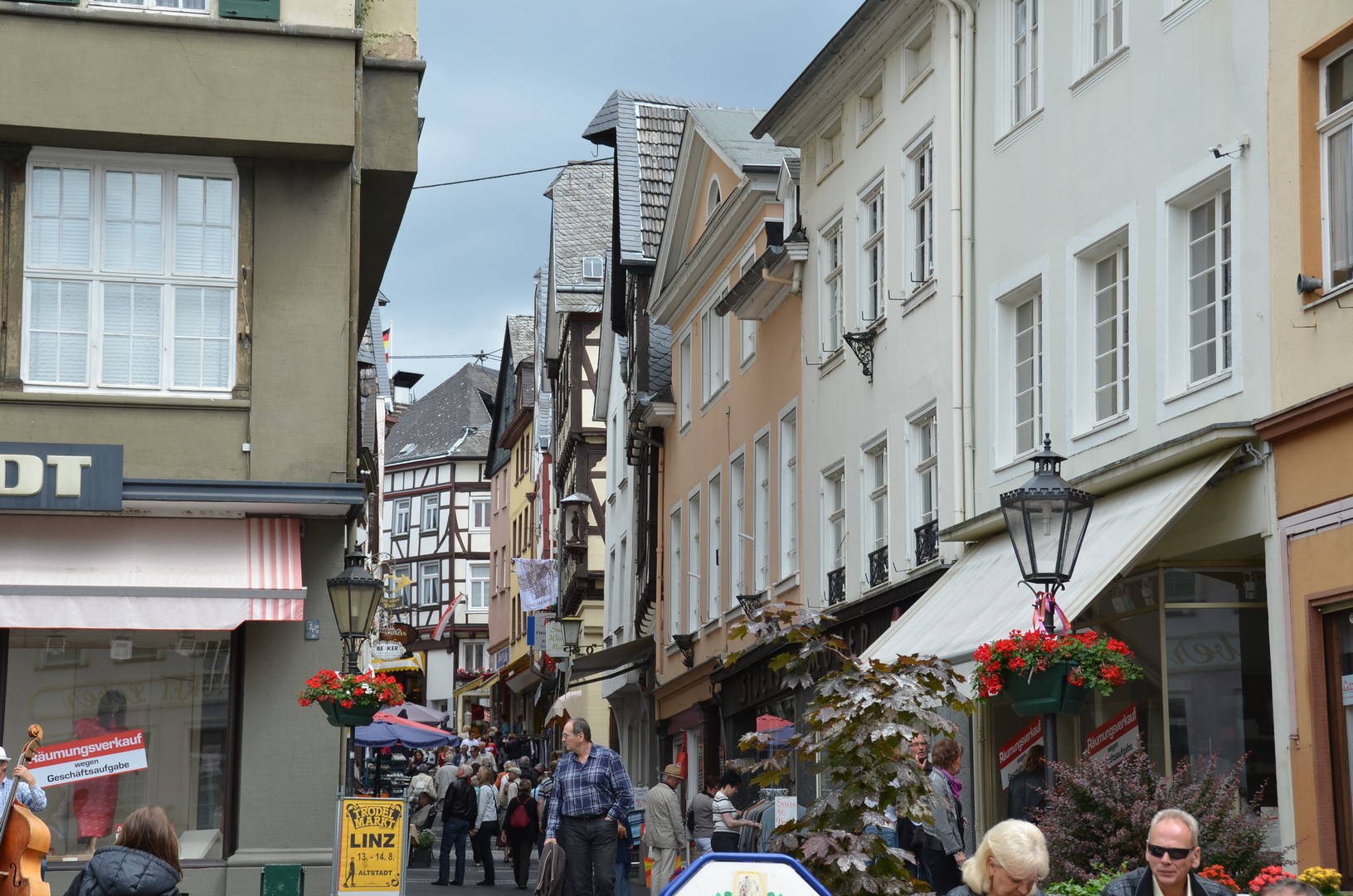Linz am Rhein on vähän suurempi kaupunki noin 30 kilometrin päässä Bonnista. Linz on myös kuuluisa vuotuisesta kirpputoristaan, joka on tosiaan valtava ja ulottuu koko kaupungin alueelle. Viinituvat ja ristikkotalot kuuluvat tietysti katukuvaan. Täällä talot ovat vieläkin värikkäämpiä ja kukkia on paljon. Liikkeet ovat usein viikonloppuisin auki ja kesäisin on Linz tunnettu turistipaikka täpötäysine katukahviloineen.