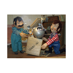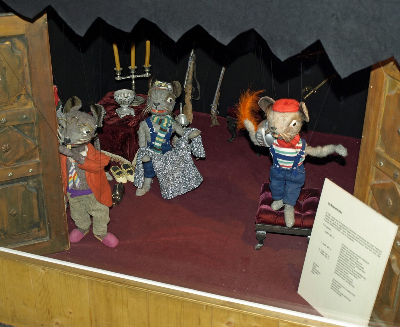 Augsburger Puppenkiste (nukketeatteri) on jo heti sodan jälkeen ollut Saksan kuuluisin nukketeatteri. Sen esityksiä tullaan seuraamaan joka puolelta maailmaan ja nukketeatterin esityksistä tehtyjä filmejä on viety kymmeniin valtioihin. Myös Suomen muumit voi tavata siellä. Teatterin esityksiin on vaikea saada lippuja ja ne kannattaa varata jo kuukausia ennen suunniteltua matkaa. Kuvani on otettu nukketeatterin museosta, jossa on näytteillä nukkeja monen vuosikymmen ajalta. Siellä voi myös tutustua nukkien tekoon. Teatteri on Augsburgin vanhassa kaupungissa ja aivan lähellä on Augsburgin toinen kuuluisa paikka, Fuggerei, josta on sivuillani oma linkki.
