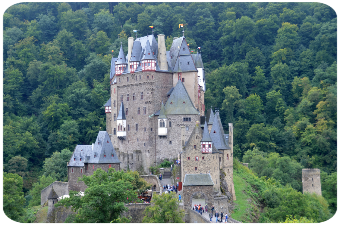 Eltzin linna on seissyt metsän keskellä jo 850 vuoden ajan ja keskiaikaista linnaa ylläpidetään edelleen parhain mahdollisin tavoin Eltzin suvun toimesta, jonka hallussa linna on ollut jo 33:n sukupolven ajan. Linna on rakennettu maisemaan, jonka vaikutusta voi kuvailla sanalla henkeäsalpaava. Linnan kunto sisältä ja ulkoa tuntuu uskomattomalta, kun tietää sen iän. Vieläkin yksityiskäytössä oleva linna on kuin suoraan Disneylandista, paitsi että täällä on kaikki aitoa ja alkuperäistä. Linnan maksulliseen kiertokäyntiin kannattaa osallistua ja jälkeenpäin voi todeta, että mitään vastaavaa ei ainakaan Suomessa löydy. Historialiset taulut, veistokset, huonekalut, korut, arvoesineet, verhot, seinä-ja lattiapinnat jne. ovat kestäneet vuosisatojen kulutuksen hämmästyttävän hyvin. Yleistunnelma on juhlallinen ja arvokas. Näyttää siltä, että linnan kuntoon on vaikuttanut juuri se tosiasia, että se on pysynyt aina samassa suvussa. Suku ei aina ole pahin. Linnan tiedot ja ajo-ohjeet löytyvät internetistä. Kannattaa tosiaan ajaa linnalle, vaikka se onkin vähän syrjässä suuremmilta teiltä.