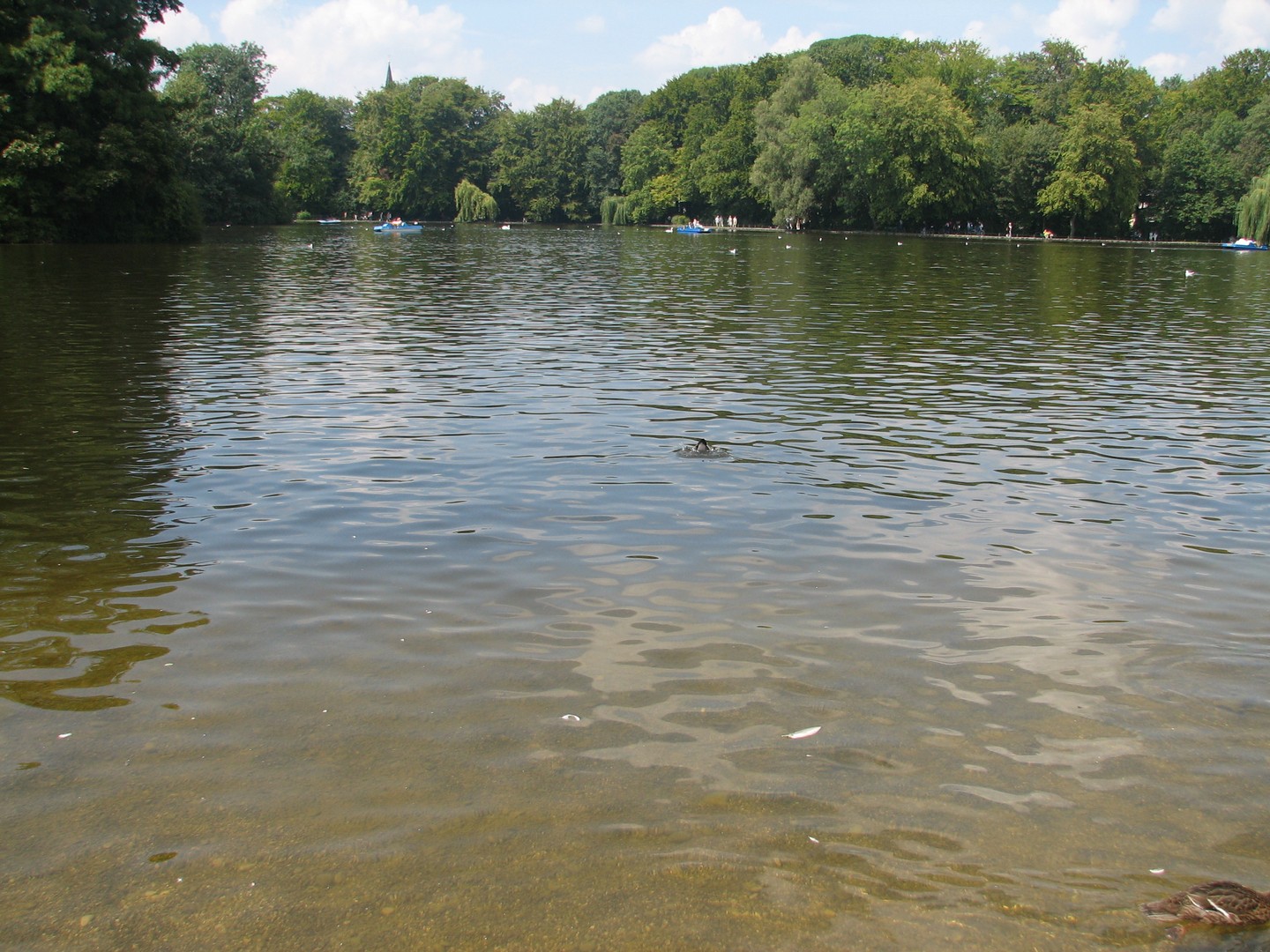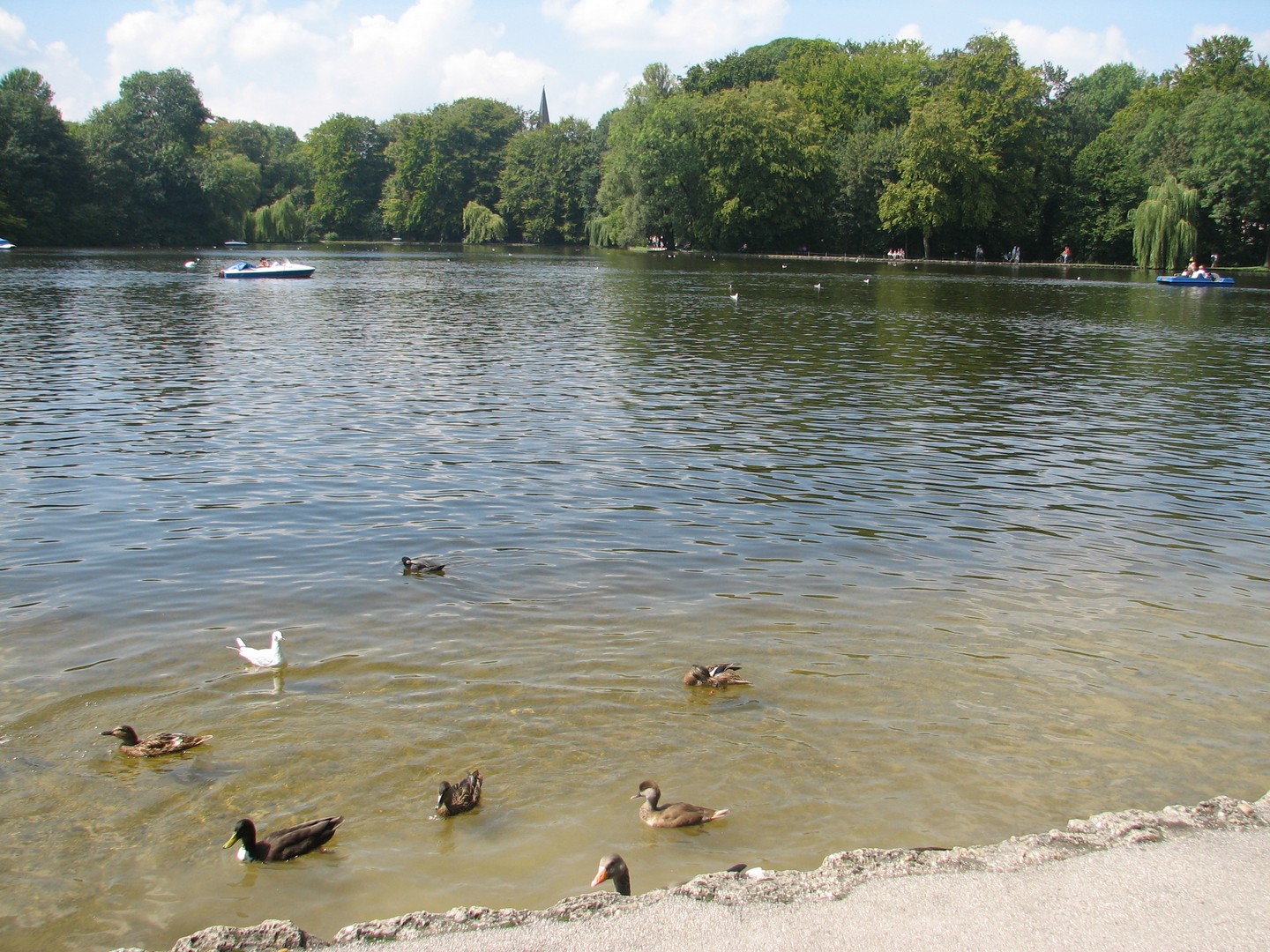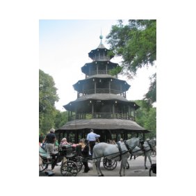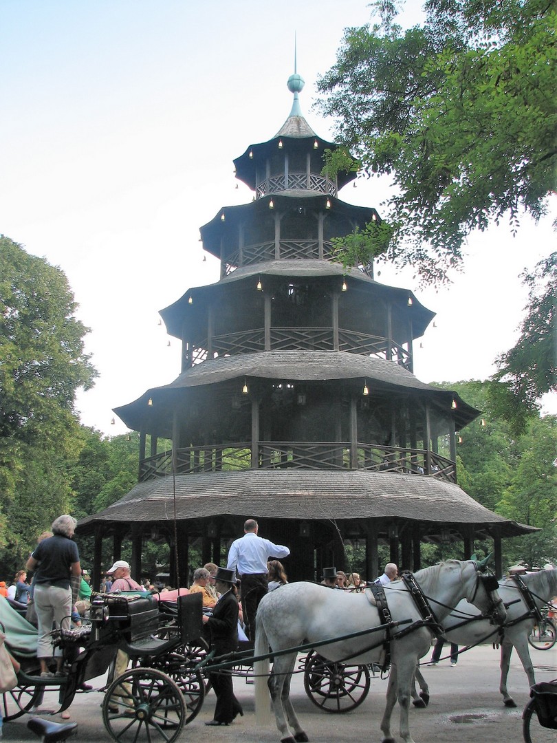 piirteitä. Puisto on 3,7 neliökilometrin suuruinen ja verrattuna esim. New Yorkin Central Park:iin vielä sitä laajempi. Puiston rakentamistyöt aloitettiin jo yli 200 vuotta sitten ja työt pisti alulle englantilainen Sir Benjamin Thompson, joka syistä, joita en tunne, sai nämä suuret alueet perintönä ja päätti tehdä niistä puiston kaikkine hienouksineen, mitkä olivat sen ajan englantilaisille puistoille ominaisia: Tekojärviä, lampia, harvinaisia puita, pensaita ja kukkia jos jonkinlaisia. Suuret kävely, ratsastus ja polkupyörätiet luovat suurkaupungin asukkaille mitä parhaat vapaa-ajanvietto mahdollisuudet. Joka puolella löytyy oluttupia ja ruokapaikkoja jos jonkinlaisia. Alueen läpi virtaa myös Isar-joki, jonka rannoilla kauniina kesäpäivinä ihmisjoukot yrittävät saada täydellistä rusketusta Aatamin ja Eevan pukuunsa. Puistosta löytyy myös englantilaiselle maisemapuutarhalla tyypillisiä rakennuksia, kuten huvimajoja ja temppeli. Aasiasta kotoisin ovat puistosta löytyvät japanilainen teehuone sekä kiinalainen torni.