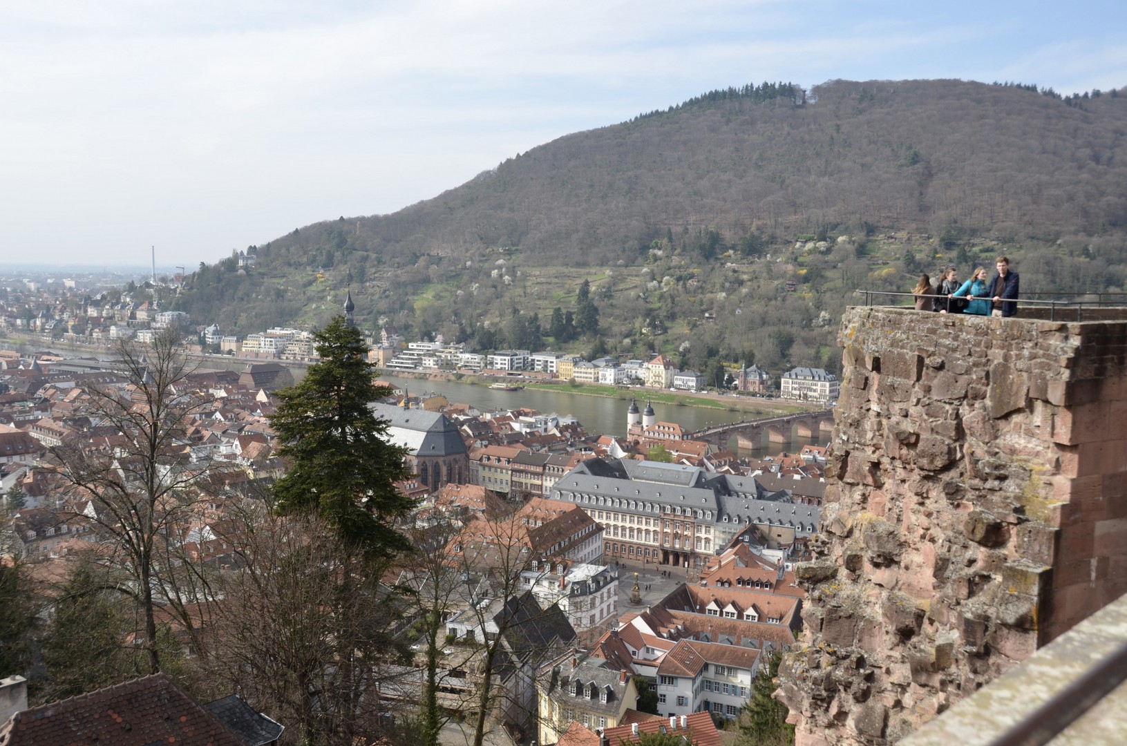 Linnan puistossa ja muureilla parveilevat turistit eri puolilta maailmaa, opiskelijat lukevat kirjojaan, valokuvaajat kuvaavat morsiuspareja ja nurmikoilla nautitaan picknickkorin antimia. Muurilta aukeaa huikea panoraamanäkymä kohti vanhankaupungin punatiilisiä barokkirakennuksia ja koko Heidelbergin symbolia, Karl-Theodor-siltaa, joka vie yli tunnetun Neckar-joen. Panoraamamaisemat nähtyään ymmärtää hyvin, miksi Heidelbergiä pidettiin 1800-luvun‘ Saksassa romantiikan pääkaupunkina.