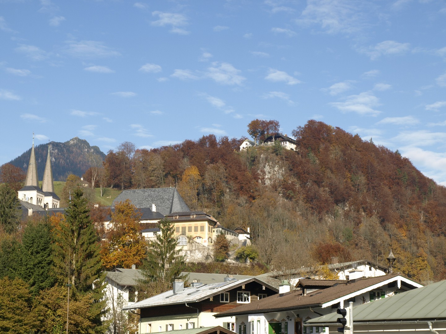 Berchtesgadenin kansallispuistoon voi tutustua melkein mihin vuodenaikaan tahansa. Alueen jylhät vuoret, metsät, järvet ja baijerilaistalot luovat kulissin, jonka vertaista ei hevillä toista löydy. Tein virheen, kun saavuin sinne ensimmäinen päivä marraskuuta. Patikkaretkien lisäksi oli tarkoituksemme käydä katsomassa kolmannen valtakunnan jännöksiä Berghofilla Obersalzberg-vuorella, jonne loppumatka ajetaan linja-autolla. Puolitiehen valitettavasti matka jäi, kun edellisenä päivänä oli turistien kuljetus vuorelle lopetettu. Berchtesgadenissa löytyy kuitenkin paljon muuta katsottavaa ja mielenkiintoista oli esim. nuorten kelkkailukilpailu kuuluisalla Königseen kelkkailuradalla. Telttailualue oli vielä täpö täynnä asuntoautoja ja luonnon väritloistot olisivat kyllä voineet kilpailla Lapin ruska-ajan värien kanssa. Ulvaana taustalla seisoo komeita vuoria, joista tunnetuimmat ovat Watzmann ja Jänner. Alue on Saksan ja Itävallan rajaseutua ja aina ei oiken tiedä, kumman maan alueella milloinkin liikkuu. Kesäisin on turistien paljous pieni varjopuoli, mutta siitä hyvästä on enenmän ulkoilmakahviloita ja ruokapaikkoja auki. Königsseen laivat ajavat myös vain kesällä kuuntelemaan kuuluisaa vuorenrinteen kaikua.