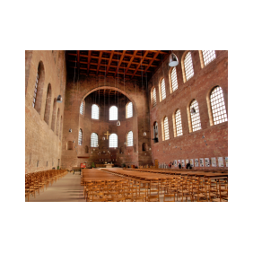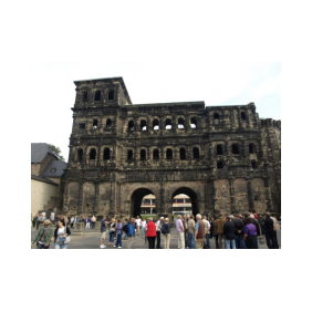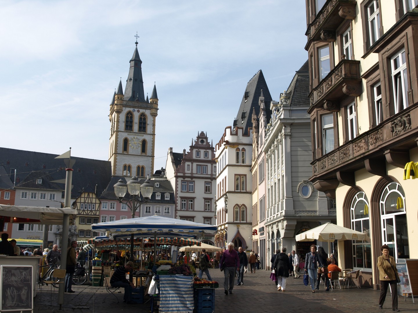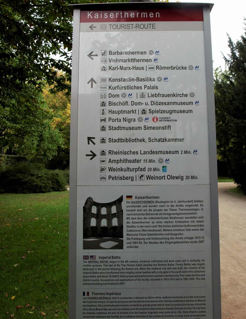 Saksan vanhimpana kaupunkina tunnettu Trier lepää viiniviljelmien ympäröimänä läntisessä Saksassa lähellä Ranskan ja Luxemburgin rajoja. Moselin vehreässä laaksossa kiertäneille turisteille on Trier varmasti matkan kohokohta. Kaupunkikuvaa värittävät edelleen merkit muinaisten roomalaisten hallintoajasta, joka kesti lähes 500 vuotta. Trier oli roomalaisten mahtava suurkaupunki ja yksi valtakunnan keskus. Trierin tunnetutuin nähtävyys on roomalaisten kaupungin portiksi rakentama Porta Nigra, joka on säilynyt alkuperäisenä. Alunperin portti on ollut valkoinen, mutta vuosisatojen saatossa saanut pintaansa kemiallisen reaktion seurauksena tumman kerroksen, mikä johti nykyiseen nimeen Porta Nigra (musta portti). Porta Nigra on kai vielä olemassa, koska se oli vuosisadat kirkon omistuksessa. 100-luvulla rakennettu portti oli osa kaupunkia ympäröivää yli kuuden kilometrin pituista muuria, jossa portteja oli yhteensä neljä. Portti rakennettiin valtavista kivenlohkareista, jotka liitettiin toisiinsa ilman laastia metallikoukkujen avulla. Kaksoisportin keskellä on sisäpiha, jonne vihollinen saatiin ansaan. Porta Nigraan voi tutustua myös roomalaisen upseerin vaatteisiin pukeuneen oppaan johdolla.Trierin kaupungissa on mös paljon muita roomalaisten rakentamia rakennuksia. 300-luvulla rakennettu keisari Konstantinuksen valtaistuinsalina toiminut Basilika oli 67 metrin pituinen 33 metriä korkea halli. Roomalaisten aikana tiiliseiniä peittivät marmori, seinämaalaukset ja kultamosaiikit. Varhaiskeskiajalla pahasti palaneessa rakennuksessa pitivät hoviaan maalliset omistajat, mutta 1800-luvulta eteenpäin rakennus on saanut palvella protestanttisena kirkkona. Toria ympäröivät toinen toistaan värikkäämmät renessanssi- ja barokkirakennukset. Torin tunnetuimpia rakennuksia ovat vierekkäin seisovat Das Rote Haus ja Steipe. Vuonna 1430 rakennettu Steipe toimi alun perin kaupungin juhlasalina. Alun perin vuonna 1684 rakennettu Das Rote Haus on rekonstruoitu 1960-luvulla entiseen asuunsa. Kahvilan ja ravintolan lisäksi talossa toimii myös Spielzeug Museum -lelumuseo. Kaupungin tunnetuin henkilö, Karl Marx, syntyi Trierissä 05.05.1818 ja varsinkin kiinalaiset turistit haluavat tutustua kaikkeen, mikä koskee Marxia. Tulossa on valtava Marx monumentti, jonka kiinalaiset lahjoittavat. Saksanmatkaa suunnitellessa ei Trieriä missään nimessä saa unohtaa. Turisteja vaan on paljon ja aivan edullisesti ei hotellihuonetta löydy. Matkailuautoille löytyy parin kilometrin päässä keskustasta hyvä leirintäalue.